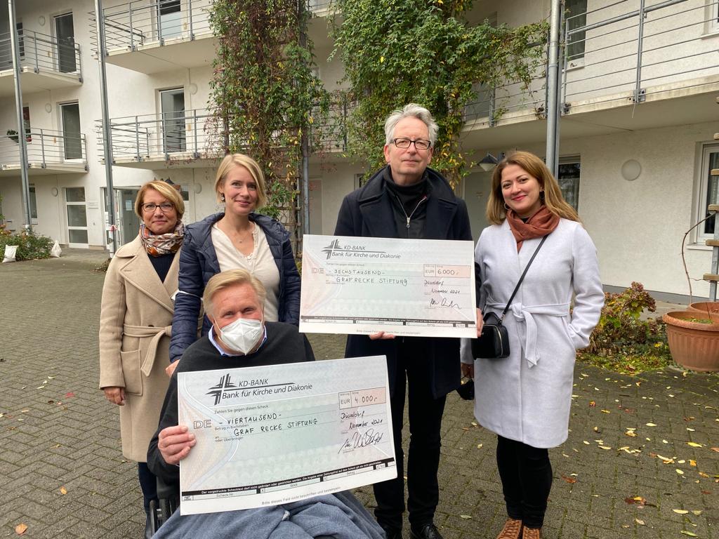 Graf Recke Stiftung in Düsseldorf-Grafenberg und konnten dort einen Scheck über 4.000 Euro überreichen. Damit kann älteren Menschen der Neustart nach der Hochwasser-Katastrophe im Sommer erleichtert werden.